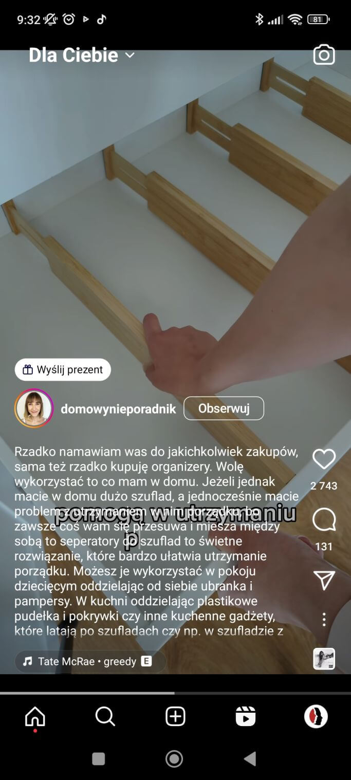 Jak już wspomniałam na zasięg rolki wpłynie zastosowanie popularnych hasztagów, które są jednocześnie dopasowane do treści. Warto tez, szczególnie na początku nie produkować bardzo długich filmików. Algorytm Instagrama sprawdza, czy dana rolka została obejrzana w całości. Jest to dla niego sygnał, ze jej treść była interesująca dla odbiorców. A na to dużo większe szanse mają jednak krótsze materiały.